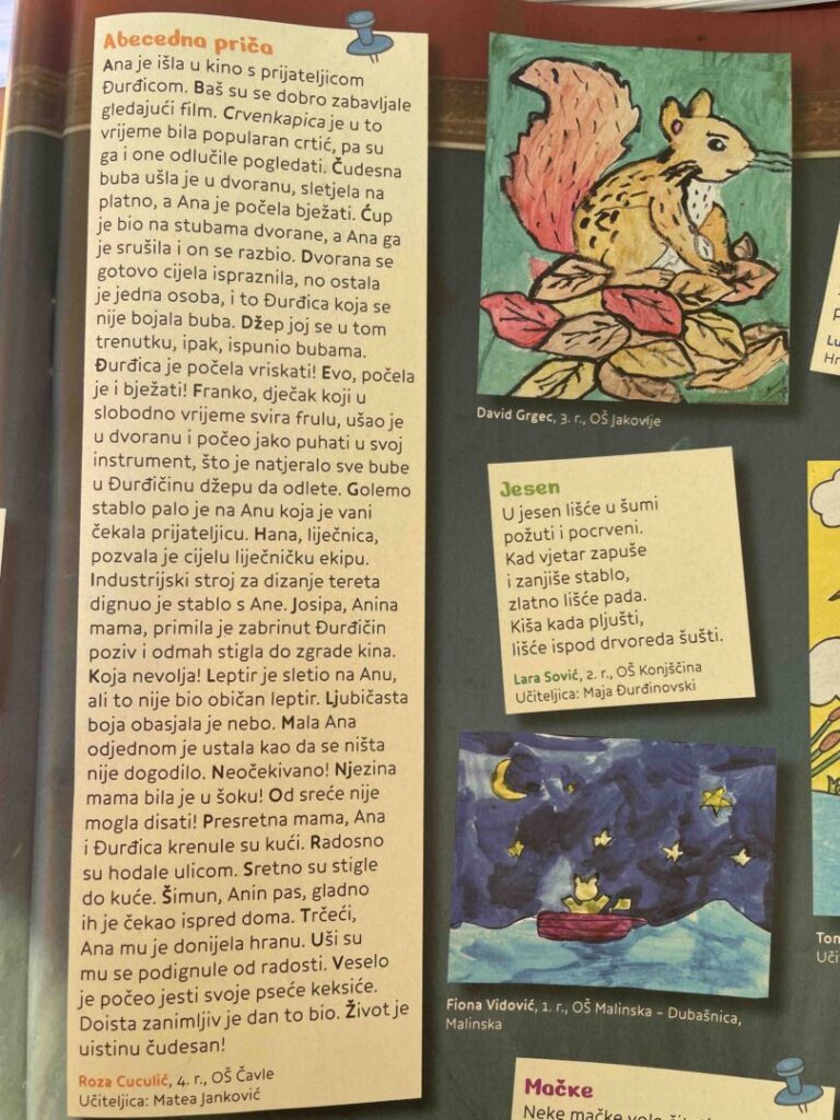 Učenica Roza Cuculić (5.a) na satovima dodatne nastave hrvatskog jezika u 4. razredu napisala je zanimljiv i maštovit tekst pod nazivom Abecedna priča. Njezin trud je prepoznat i objavljen u dječjem časopisu Smib, a priču možete pročitati u nastavku.